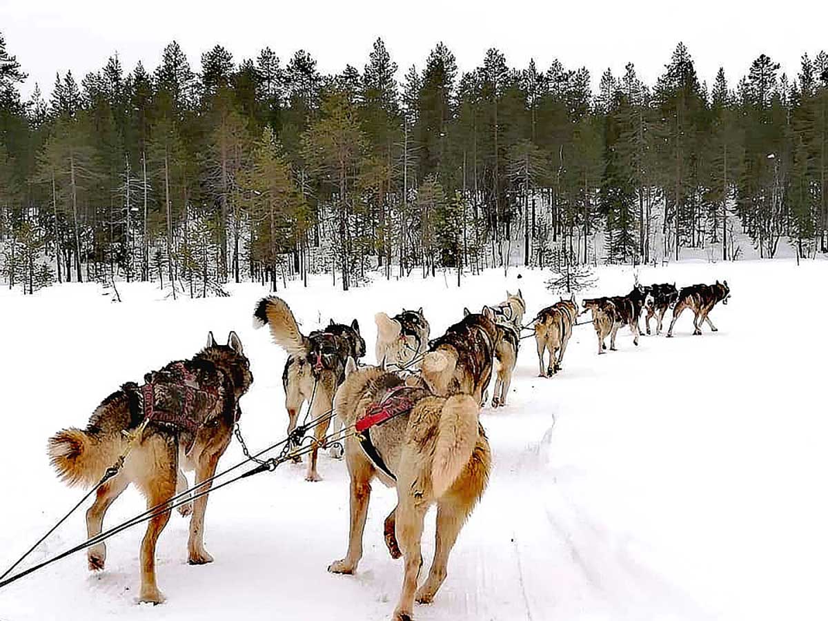 ➔ Safari con i cani Husky Parti per un safari in mezzo alla foresta, comodamente seduto in slitta.